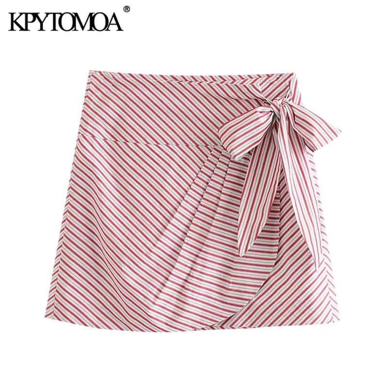 Женская винтажная юбка KPYTOMOA, мини-юбка в полоску с бантом и высокой талией на молнии сзади, модель 2020