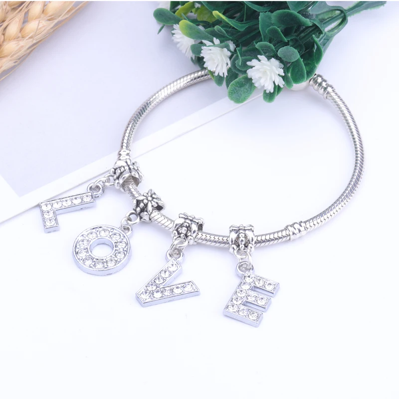 Лидер продаж сплав из бисера Шарм буквы алфавита с кристалл кулон Бусины подходит Pandora Браслеты DIY ювелирных