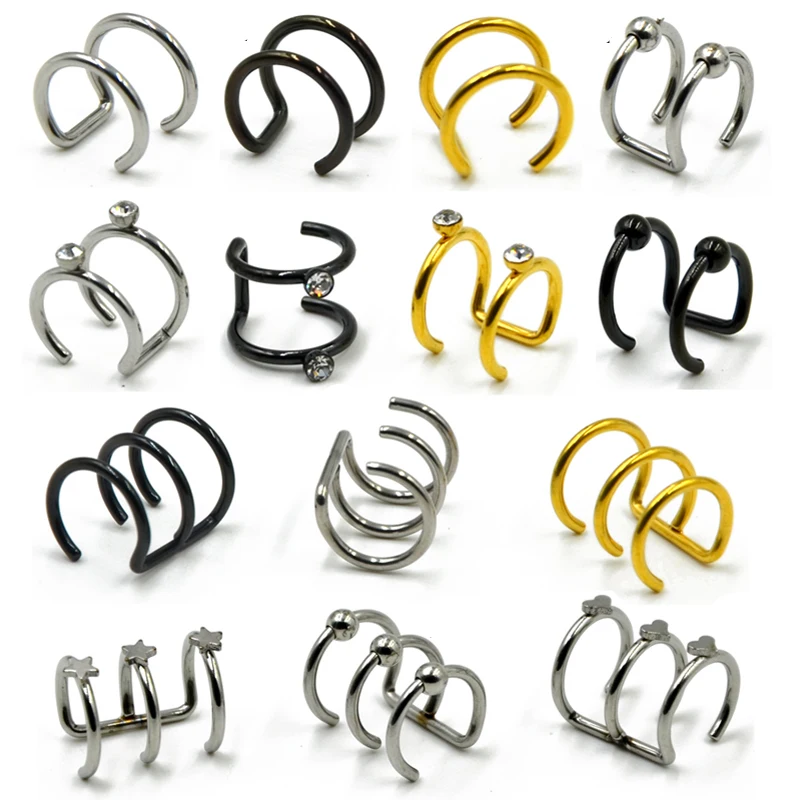 Шт. 1 шт. Нержавеющая сталь двойной и тройной обруч ухо манжеты клип на серьги ушной хрящ не пирсинг синтетическое закрытие волос