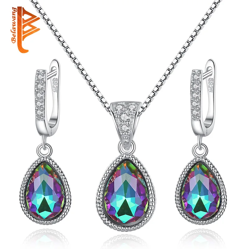 Классический Цвет 925 пробы серебряные украшения со стразами комплект серьги и кулон Цепочки и ожерелья Ювелирные наборы Свадебные аксессуа...