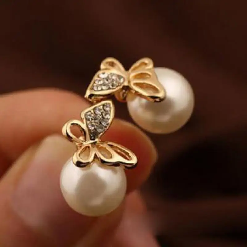 Корейские модные новые серьги дикие маленькие свежие серьги Бабочка с жемчугом женские темпераментные блестящие популярные ювелирные изд...