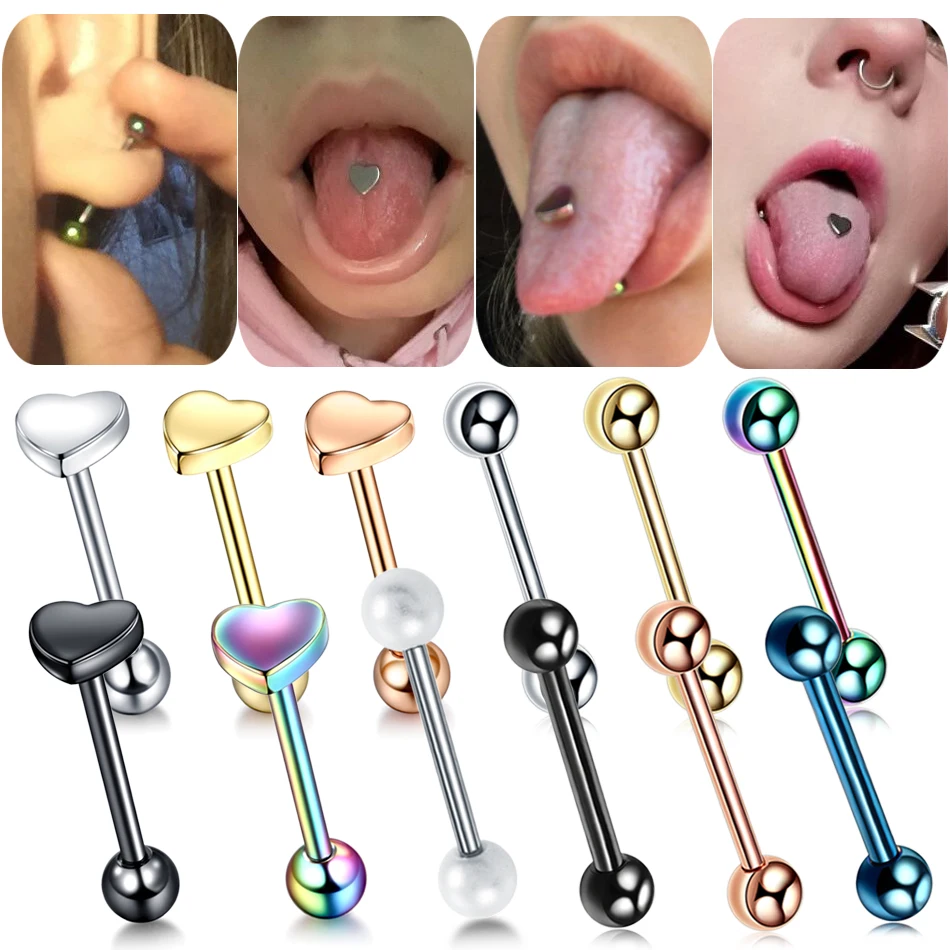 1 шт., стальная штанга для языка в форме сердца и шарика, кольца для языка, пирсинг языка, сексуальное кольцо для сосков, спираль, серьги, ювелирные изделия для пирсинга тела, 14 г