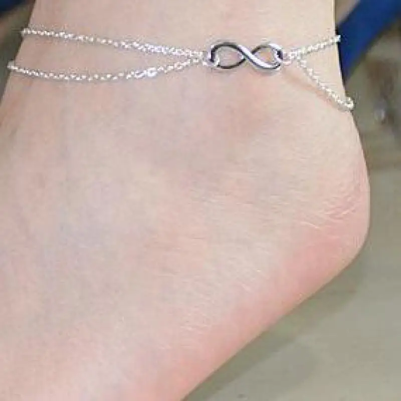 Панк 2018 Новая модная летняя обувь для улицы простые двойные слой с цифрой «8» и надписью, бабочка/Серебристая женская оптовая продажа с фабрики анклет (браслет на ногу по выгодной цене