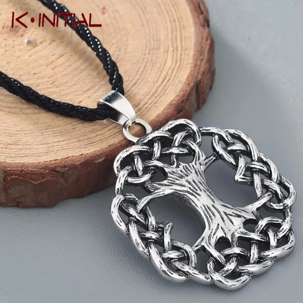 Kinitial Винтаж Древо жизни Цепочки и ожерелья Ash мировое древо Подвески Ожерелья для мужчин Викинг скандинавский кулон Посеребренная бронза ю...