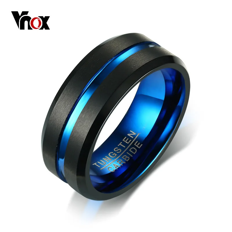 Vnox 8 мм Вольфрам карбида Для мужчин обручальное кольцо Интерфейс черный матовая поверхность классический мужской ювелирный Подарок на юбил...