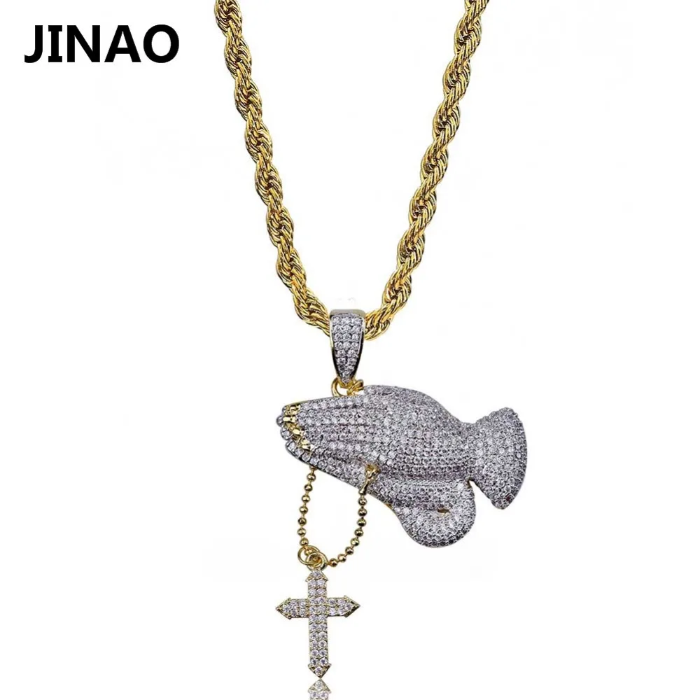 JINAO золотого и серебряного цвета, многослойное ожерелье с крестиком, Иисус, Дева Мария, цепочка, кулон в руку, ожерелье, подарок на Пасху, ювелирные изделия