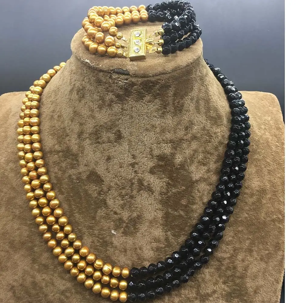 Настоящий коричневый пресноводным культивированным жемчугом черный оникс заявление Цепочки и ожерелья Браслет