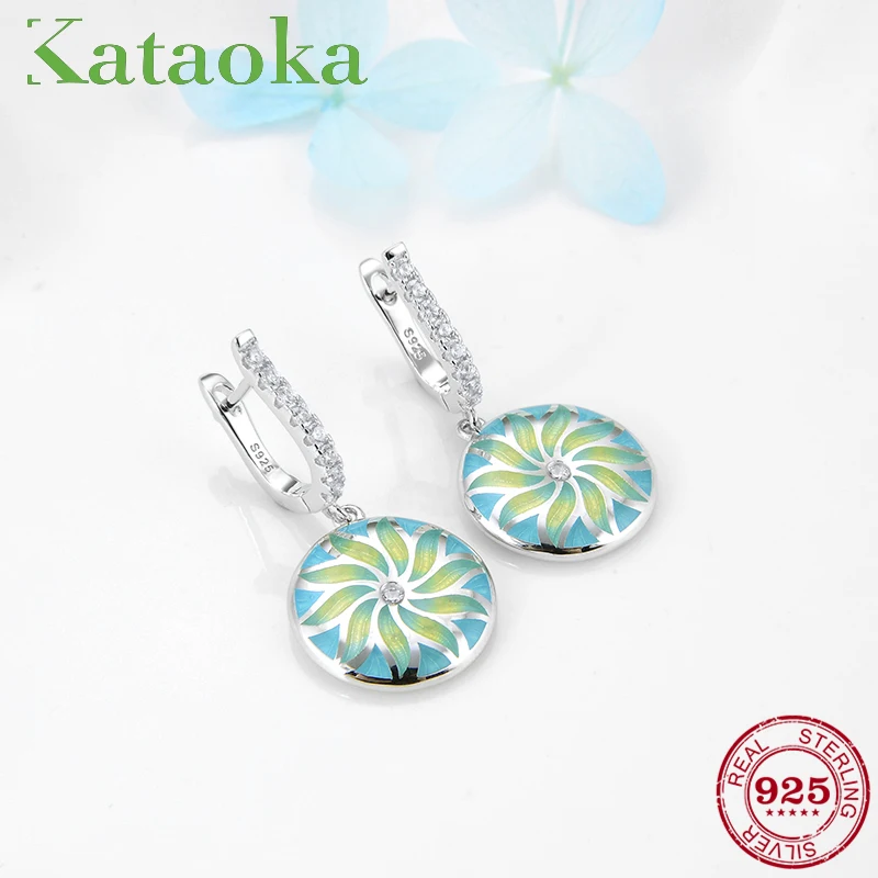 Высокое качество 925 пробы серебро Вечная любовь цветок голубой эмалью серьги для Для женщин Ясно CZ серьги Модные украшения