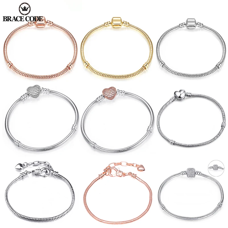 Код бандажа, 2019, высокое качество, розовое золото, цветная змеиная цепь, очаровательный браслет, подходит для оригинальных бусин, прекрасный браслет, ювелирное изделие, подарок для женщин