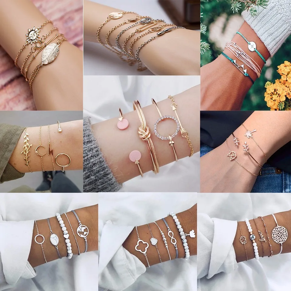 DIEZI 4 шт./компл. богемный серебряные цепочки, бусы Браслеты Винтаж модные океан карту основа Браслеты наборы браслетов для Для женщин ювелирн...