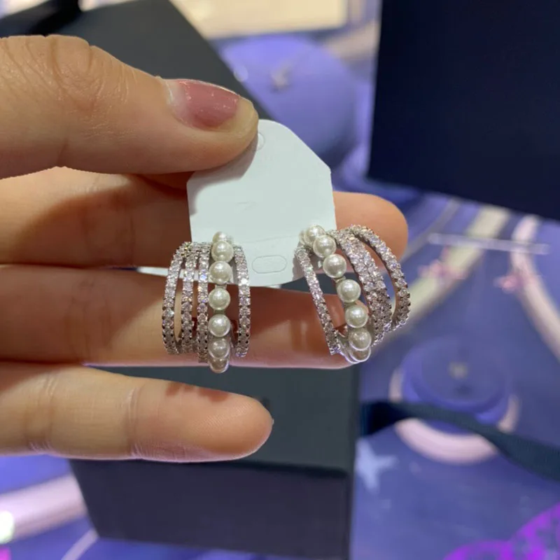 UMGODLY Fashion Silver Color White Multi Hoop Circles Pearls Earrings Micro Cubic Zirconia for Women Luxury Brand Jewelry