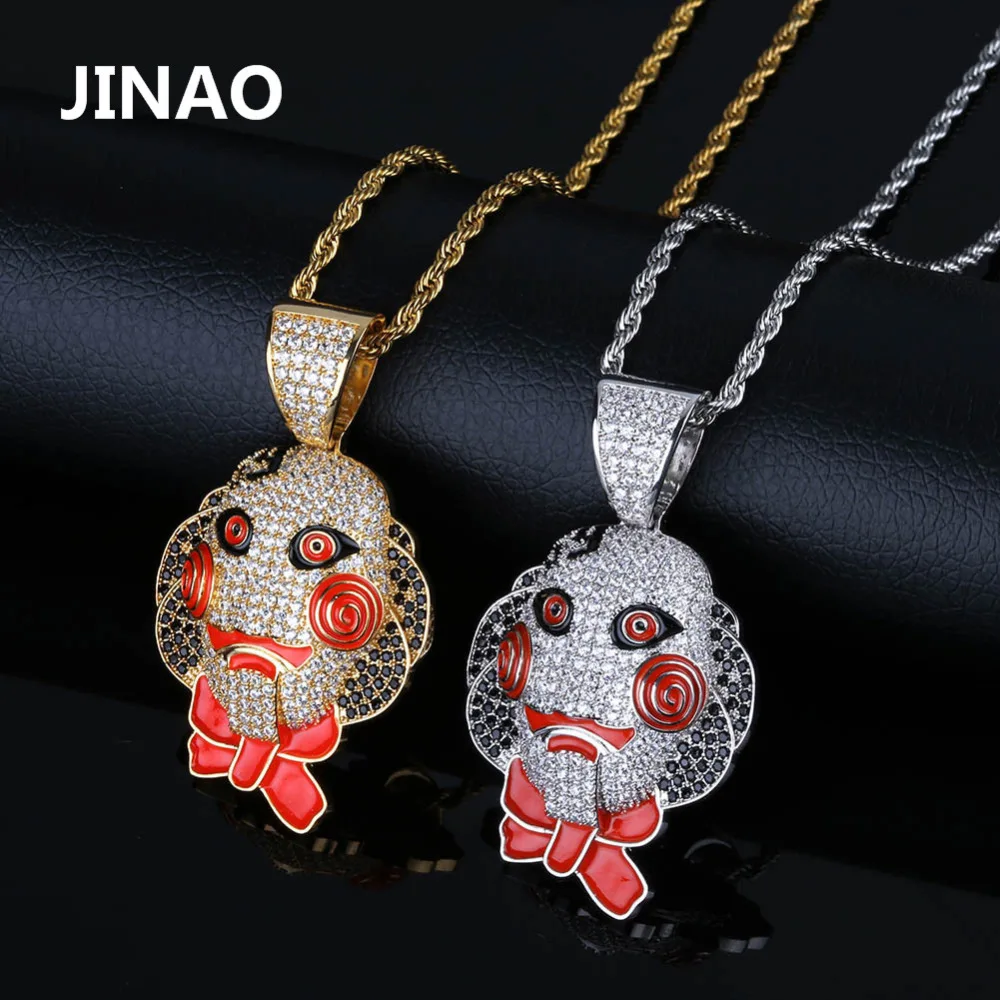 JINAO хип-хоп ювелирные изделия кубический циркон золото серебро пилы фильм ужасов тема Iced Out цепи для мужчин подарки 69 пилы клоун подвески