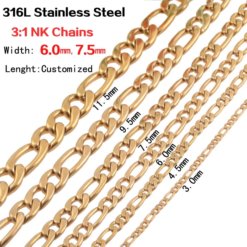 Оптовая продажа 10 шт./лот мм 7,5 мм/6,0 мм широкий золотой 316L нержавеющая сталь 3:1 NK цепи ожерелья для мужчин Мода Большой цепочки и ожерел