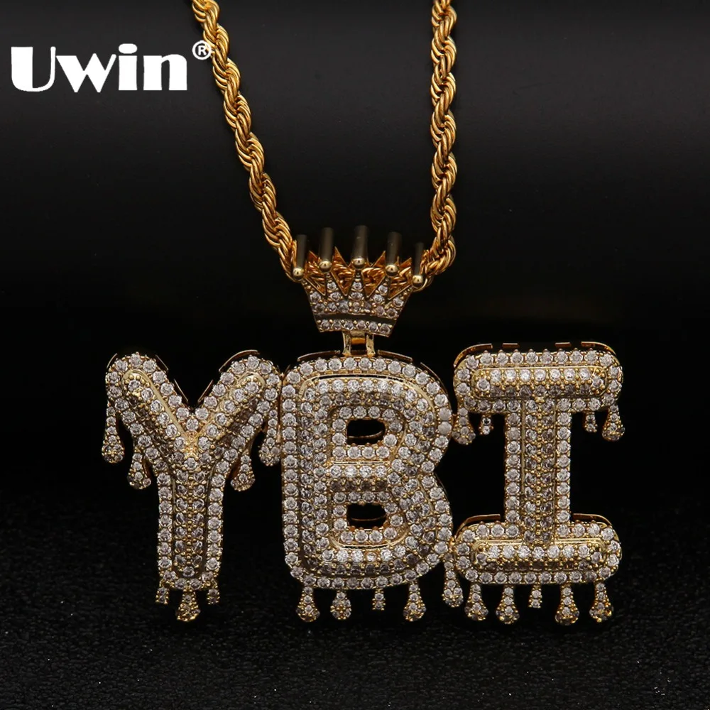 Uwin коронованное Капельное письмо кулон ожерелье Customzie пузырь буквы сочетание золото серебро розовое золото цвет слова имя OEM ссылка