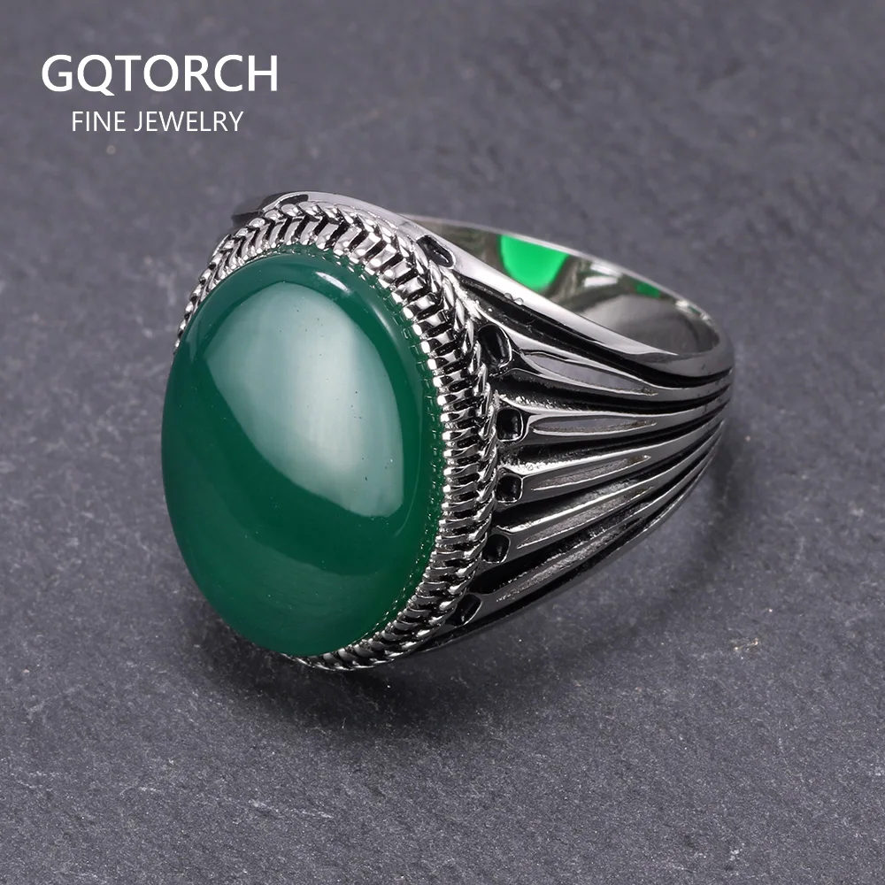 Реального Чистая 925 пробы серебро турецкие кольца для Для мужчин полые ретро кольца с камнями черный, красный оникс оригинальные Цвет anelli Uomo