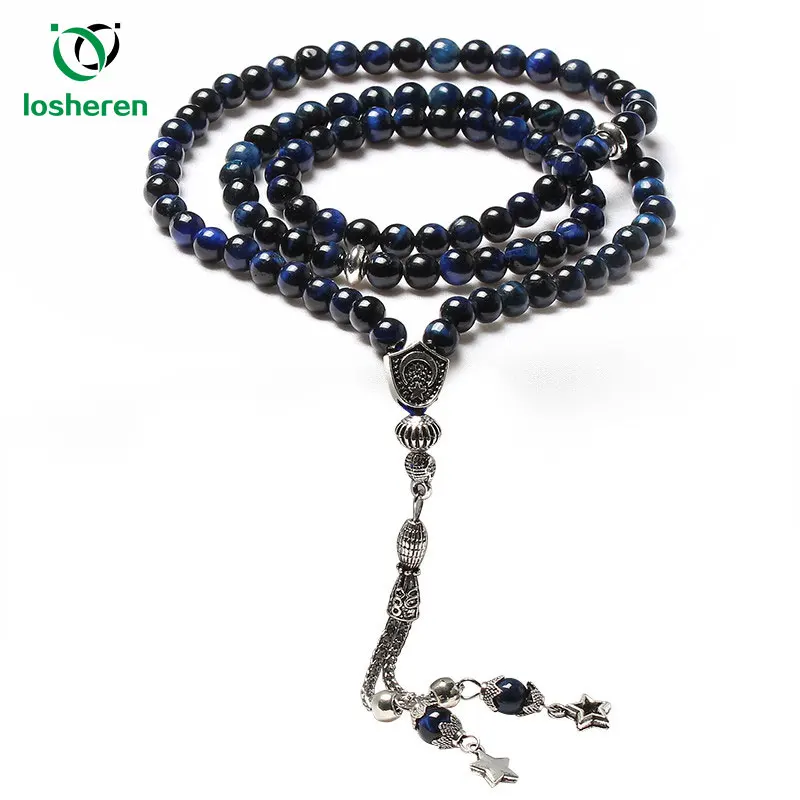 LOSHEREN Ислам Tasbih натуральные Агаты камень бисером Браслеты на руку Misbaha мусульманские четки 99 подарки ювелирные изделия для Рамадан