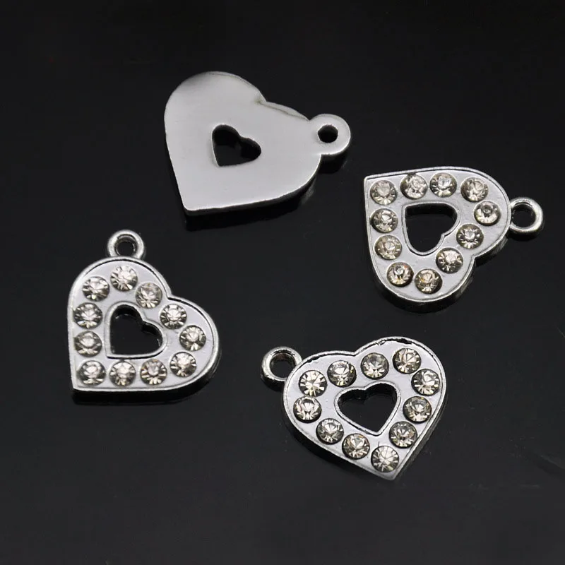 Бесплатная доставка! 100 шт. полный горный хрусталь полые сердца повесить прелести подходят собака кошка воротник метки браслеты Ремни телеф...