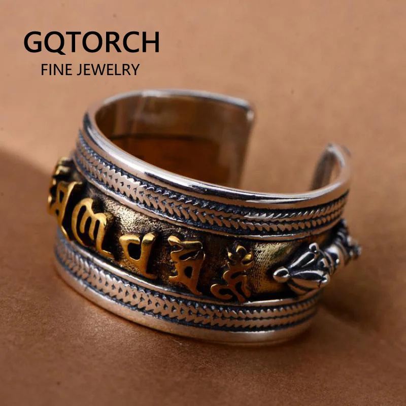 925 пробы серебро Тибетский кольцо Мужские Шесть слова выгравированы Ом Мани Падме Хум Ваджра Кольцо с мантрой молитва Буддизм ювелирные изд...