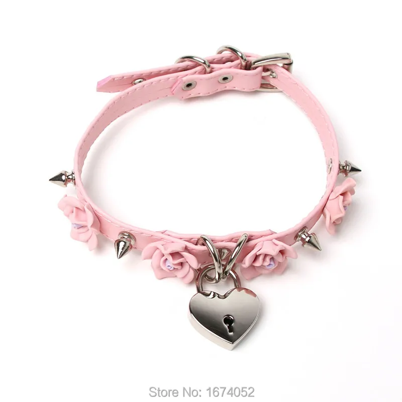 Harajuku Лолита 100% ручной работы розы шипы воротник замок ключ медальон колье кожаное ожерелье