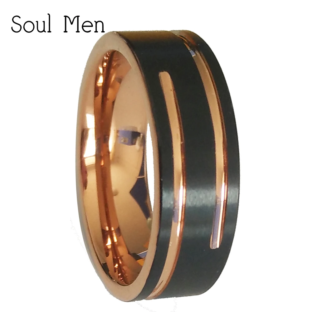 Soul мужчины мм 8 мм черный с розовым золотом цвет кольцо для мужчин Вольфрам обручальное кольцо комфорт Fit Матовый Два канавки Отделка Размер ...