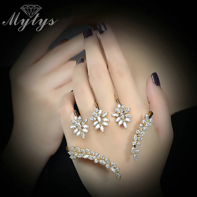 Mytys манжеты Браслеты желтого золота Цвет палец Ладонь Браслет Новинки для женщин модные handleT r1178
