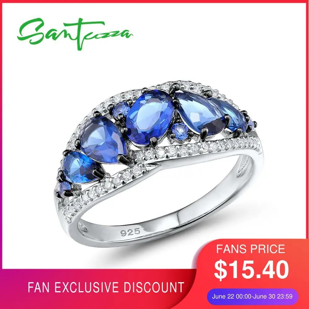 SANTUZZA, серебряные кольца для женщин, настоящие, 100% 925 пробы, серебро, синее стекло, белое, CZ, свадебные, юбилейные, вечерние, хорошее ювелирное изделие