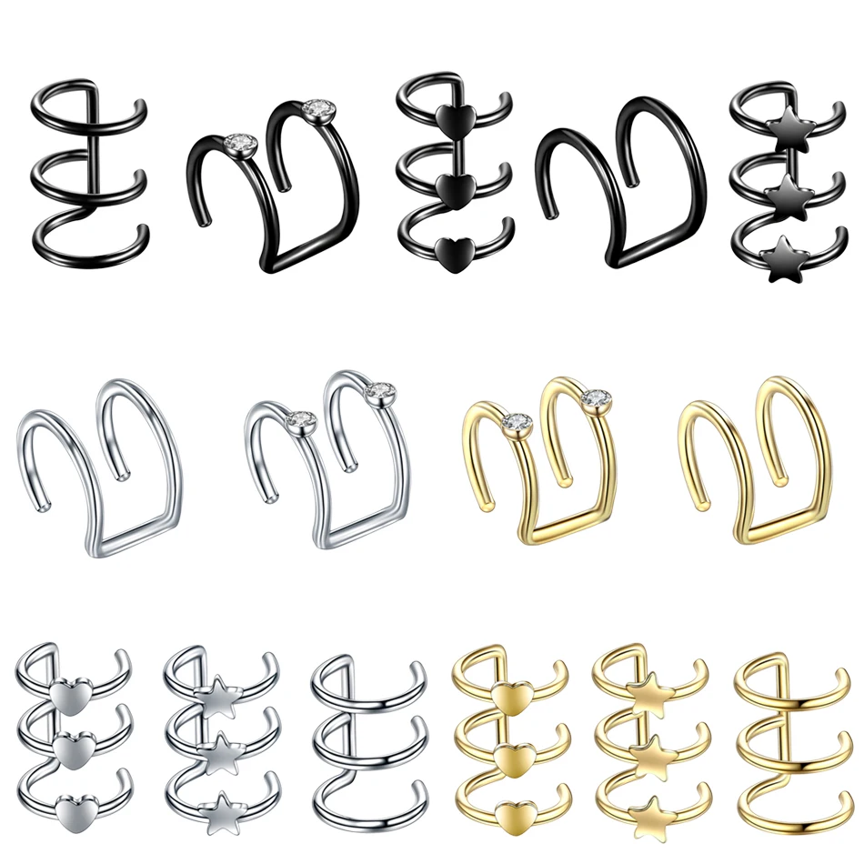 1 шт. Сталь поддельный пирсинг поддельные серьги уха хряща клип на кольцо спирали пирсинг Non пронзили клип на закрытие кольцо пирсинг