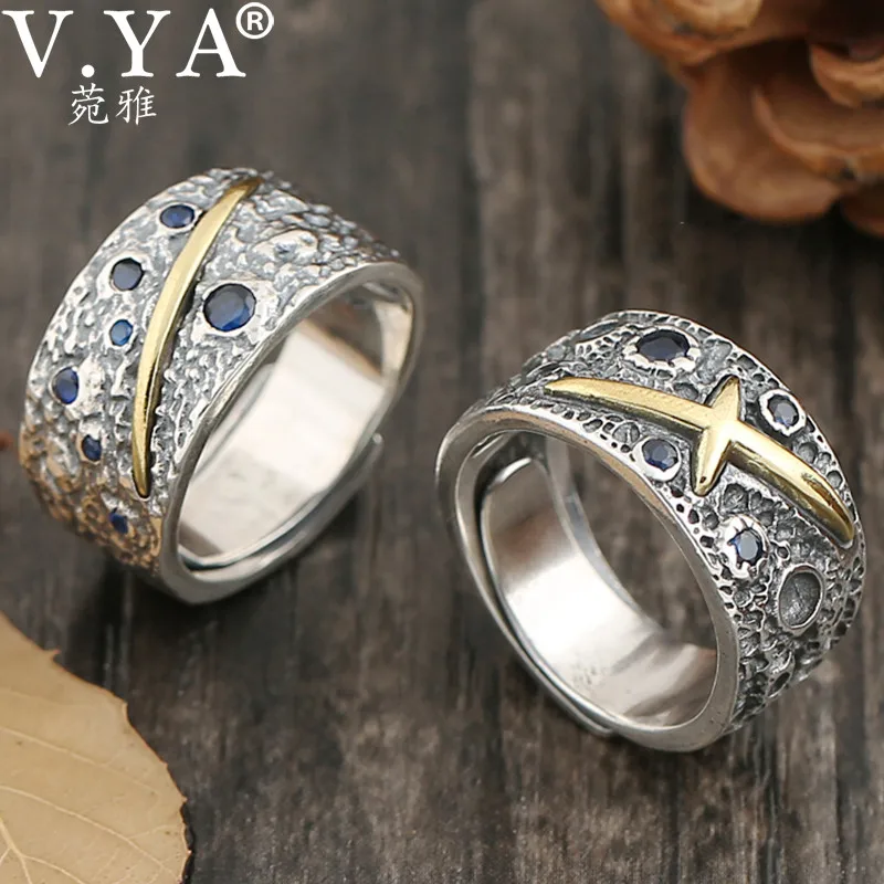 Мужское Открытое кольцо V. YA, серебряное кольцо из тайского серебра 925 пробы с синим цирконием, модные ювелирные изделия, подарки