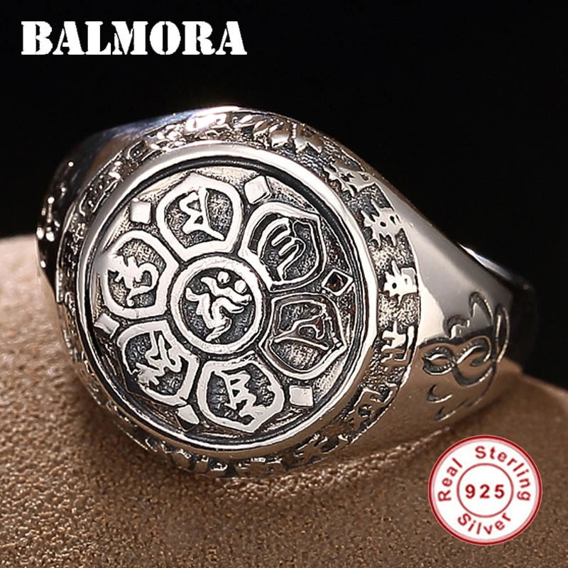 Балмора Винтаж 100% натуральная 925 пробы Серебряные ювелирные изделия буддийских Шесть слова Мантра кольца для Для женщин Для мужчин любител...