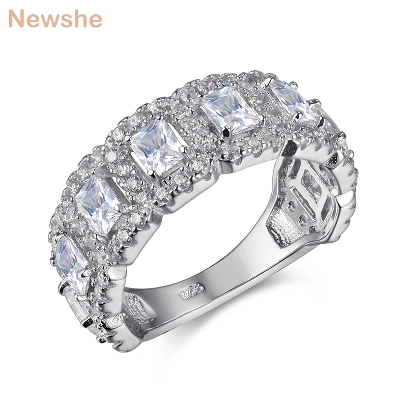 Newshe одноцветное 925 пробы Серебряное обручальное кольцо Обручение Группа 2 Ct AAA CZ вечность классические украшения для Для женщин JR4682