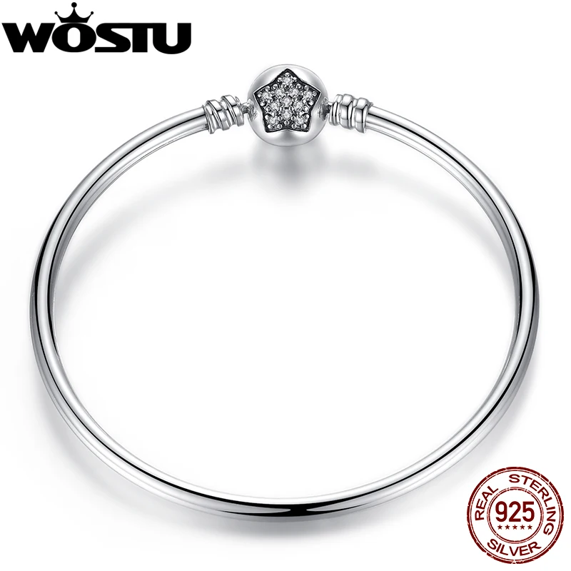 100% 925 пробы серебряный браслет со звездой с прозрачными фианитами для женщин, модные DIY ювелирные изделия, подходят для оригинальных браслет...