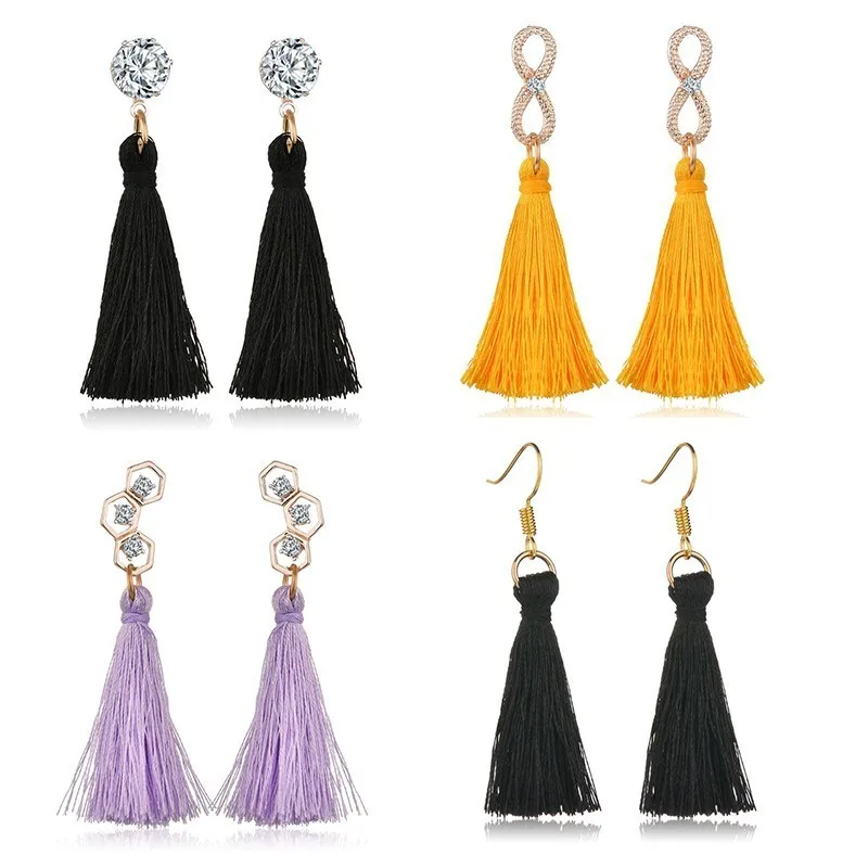 Naomy & ZP, винтажные богемные серьги с кисточками для женщин, длинные, большие этнические, ручная работа, хлопок, бахрома, висячие серьги, вечерние ювелирные изделия, бижутерия