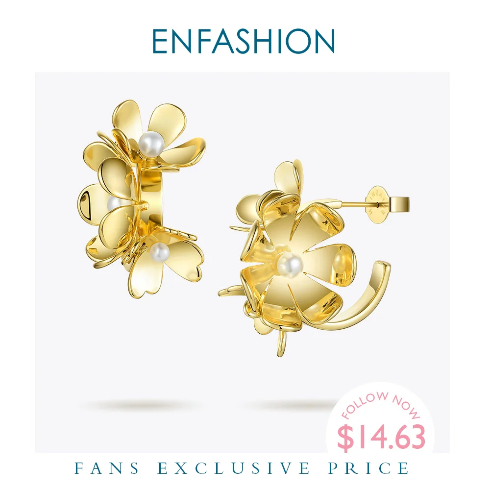 Женские серьги-кольца ENFASHION с цветком и лепестками, золотистые милые маленькие круглые обручи, модные ювелирные украшения E1104