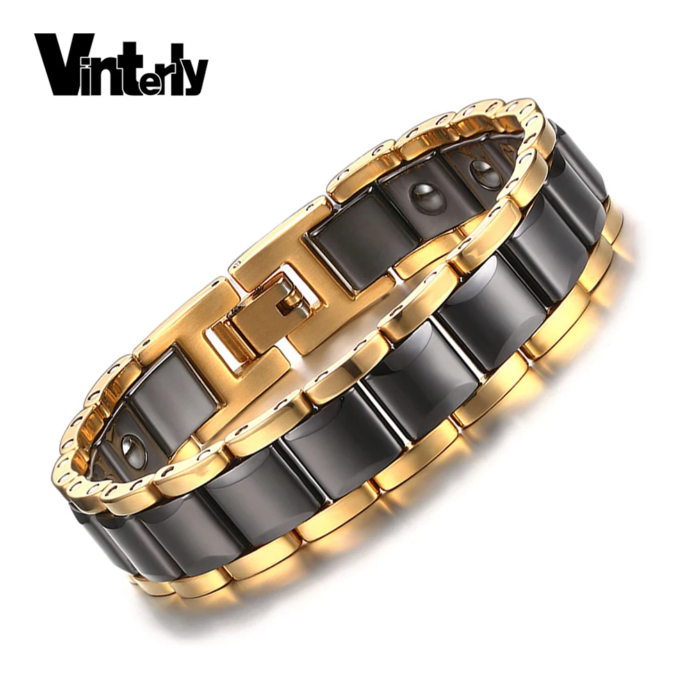 Vinterly гематит браслет для Для мужчин энергии здоровья Черное золото Цвет Керамика Браслеты Для мужчин ручной звено цепи ювелирные изделия