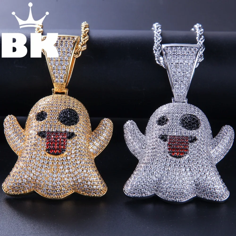 Шикарный король пользовательское ожерелье в виде призрака хип хоп полный Iced Out кубического циркония Золотой Серебряный CZ камень