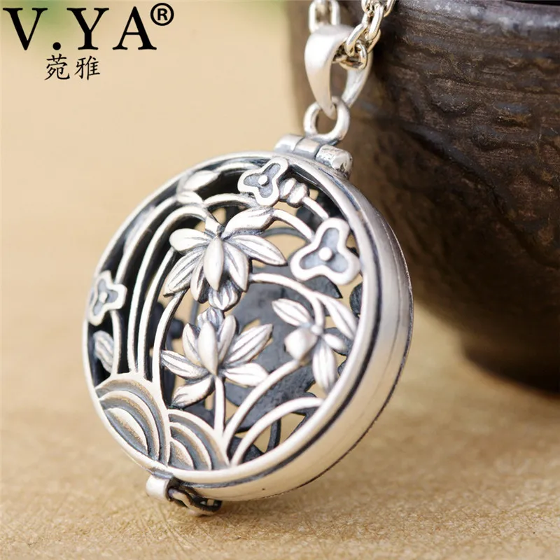 V. Я реального 925 пробы серебряный медальон кулон с секретом для Для женщин женские вырезы в виде цветка Подвески Ювелирные изделия без цепоч...