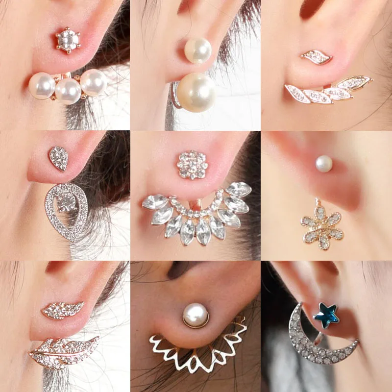 SMJEL модные хрустальные серьги в виде Луны и звезды, пирсинг для женщин, свадебные жемчужные украшения в виде листа, геометрической формы, Дву...