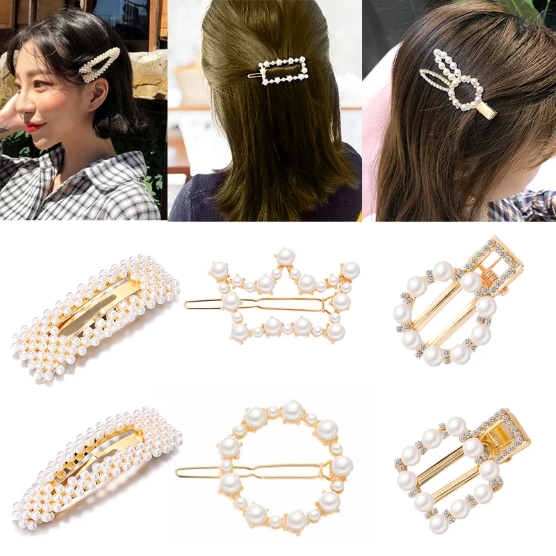 Корейская версия ювелирных изделий простой ретро дикий Геометрия пресноводный жемчуг золото небольшой шпилька слово зажим, аксессуар для ...