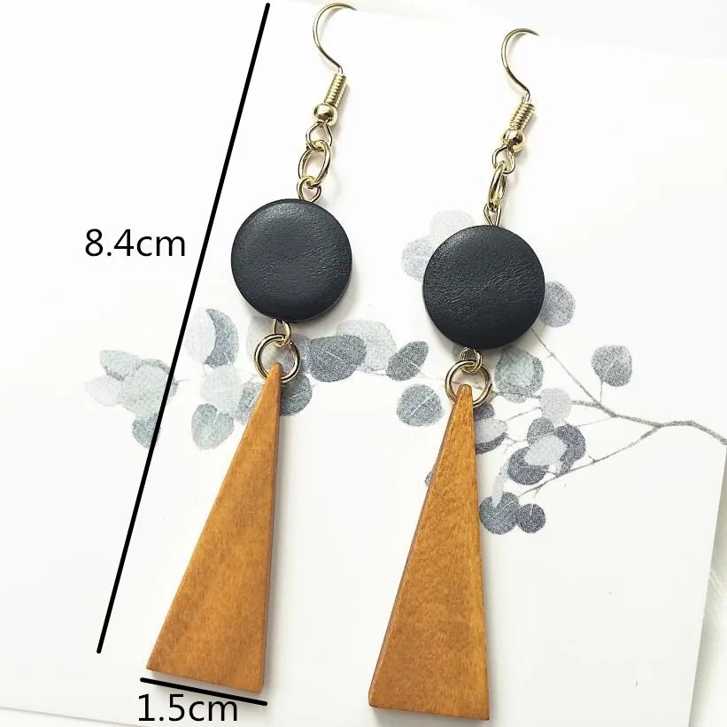 Новые деревянные круглые серьги для женщин, корейский, геометрической формы, треугольные серьги 2019, длинные серьги-подвески