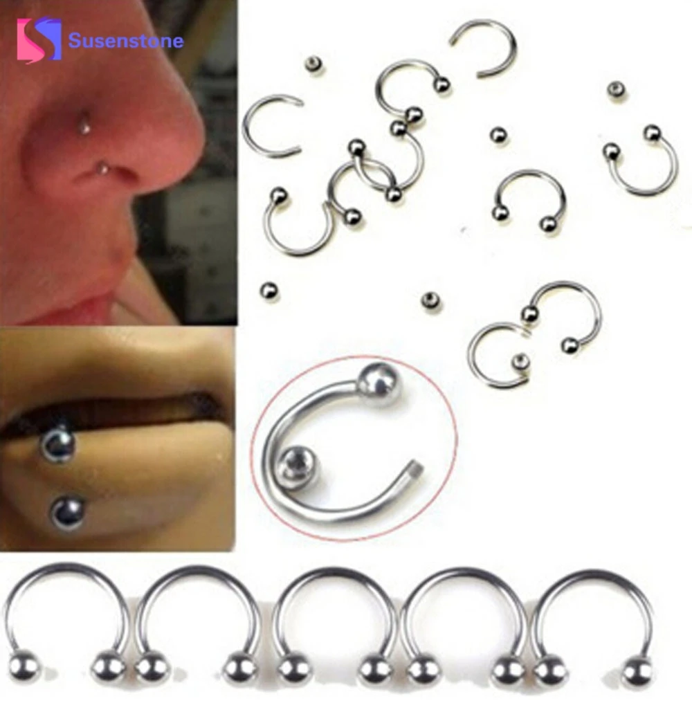 Susenstone 2 шт. из нержавеющей стали Кристалл пирсинг для носа крючки нос пирсинг для Тела нос Открытое кольцо для пирсинга ювелирные изделия для женщин подарок