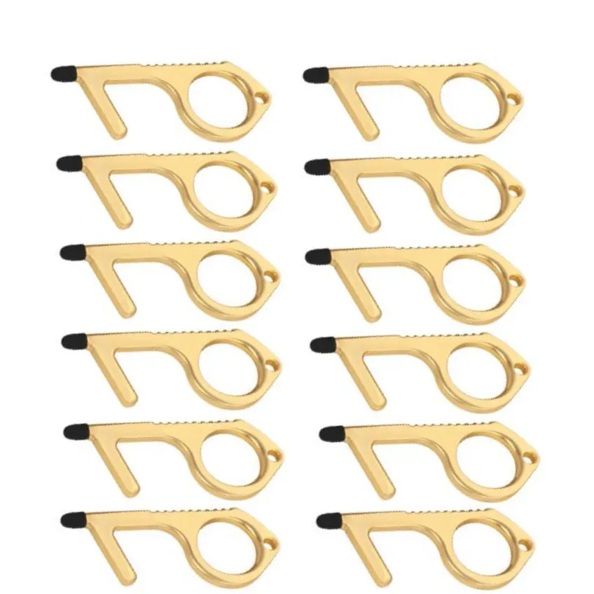 12 шт./лот гигиеническая ручная Антимикробная латунь EDC открывалка для двери сенсорный экран Пресс Лифт Инструмент Бесконтактный открывалка для двери брелок