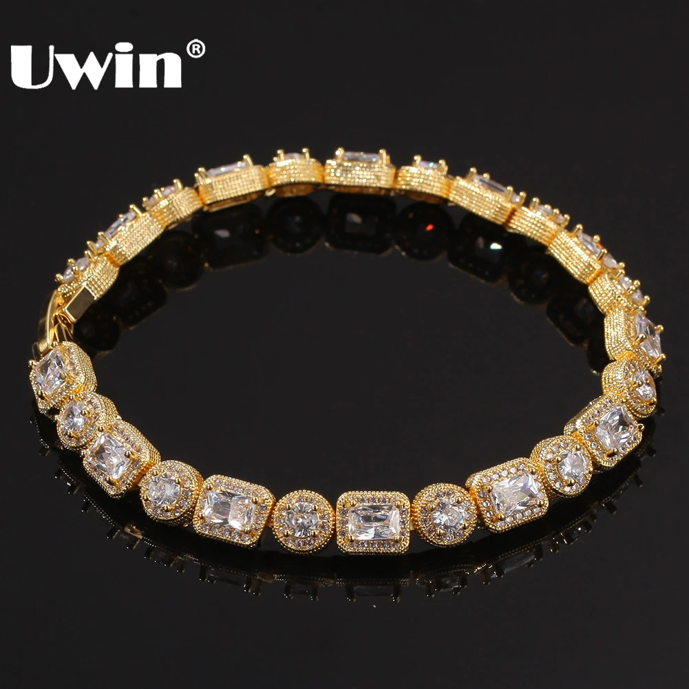 UWIN роскошный микро Pave кубический цирконий микс круглый и квадратный Браслет Bling 8 мм Шарм Мужские браслеты для хип-хопа ювелирные изделия