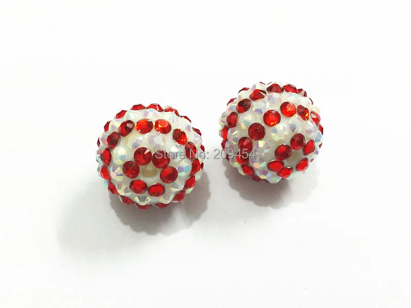 Новинка! 20 мм 100 шт./лот Белый AB с красной полосой смолы Стразы бусины, массивные бусины для детей ювелирных изделий