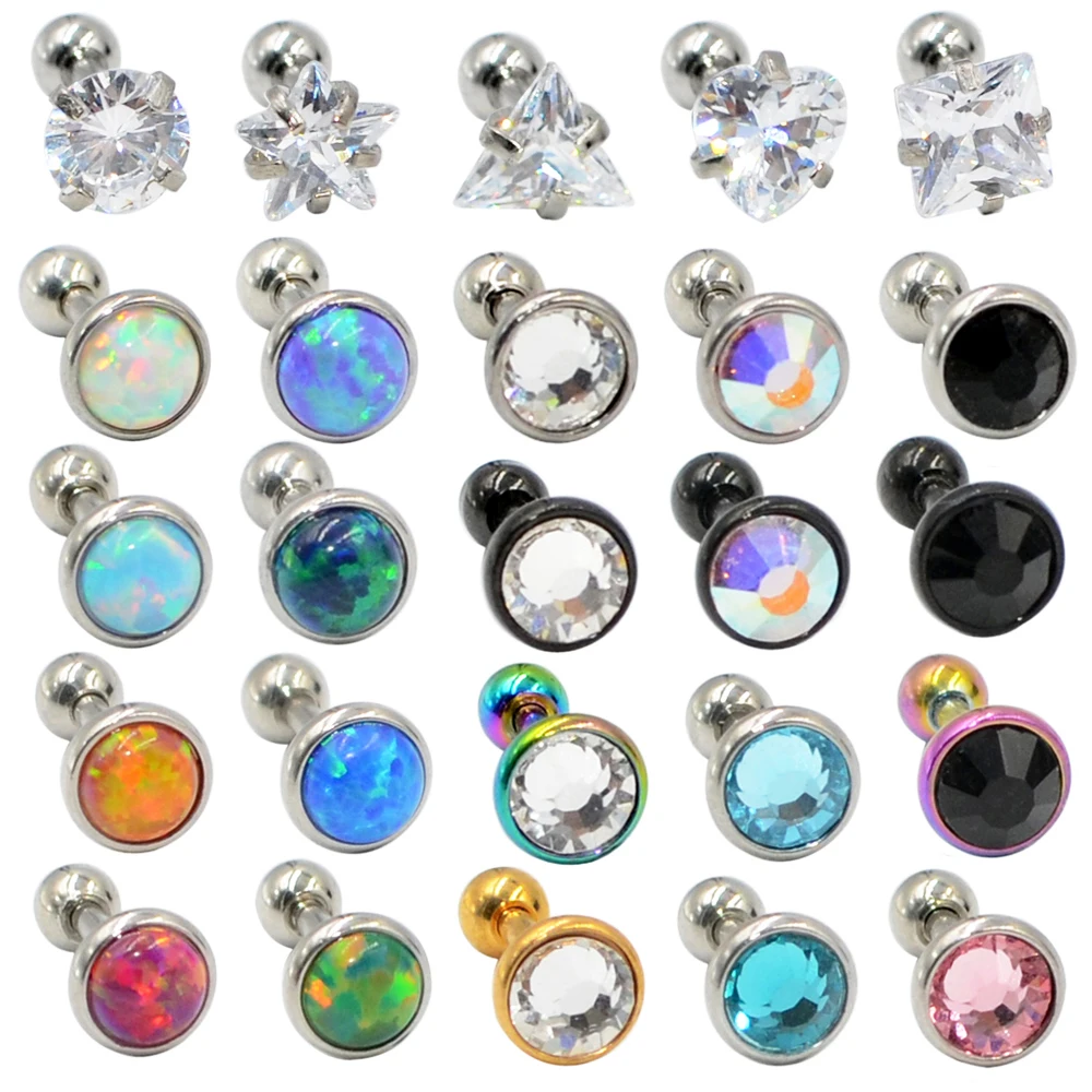1 шт хирургическая сталь опал циркон ухо траг серьги-гвоздики ухо губная серьга-гвоздик нательное пирсинг-кольцо ювелирные изделия 16 г top3mm & 4 мм & 5 мм