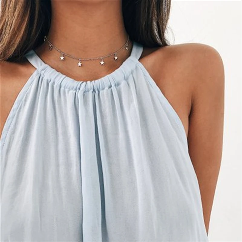 2019 Новый Boho женский чокер золотая, Серебряная цепочка чокер со звездой подвеска с деревянной вставкой Kolye Bijoux Collares Mujer gargantilha Collier Femme