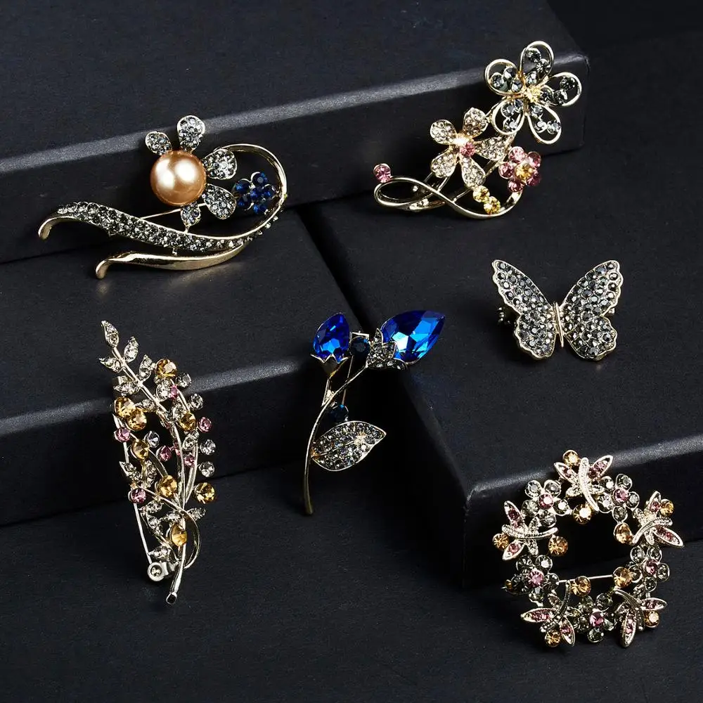 Винтажная брошь со стразами и растениями, цветок, кофе, горный хрусталь, растение, Бабочка, животное, горный хрусталь, брошь для женщин, свадебная брошь, ювелирные изделия