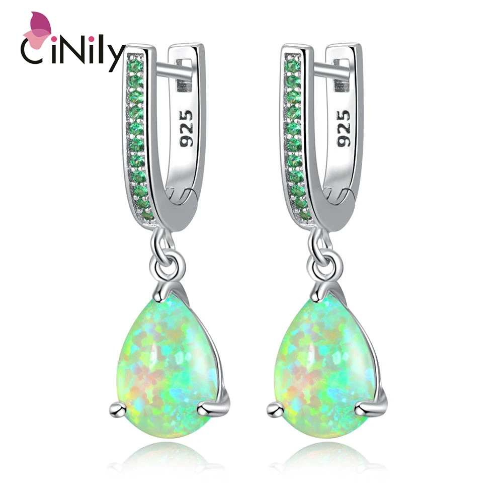 CiNily зеленый белый капель камень огненный опал висячие серьги Посеребрённый розовый Cryatal полностью ювелирное в богемном стиле для девушек и ...