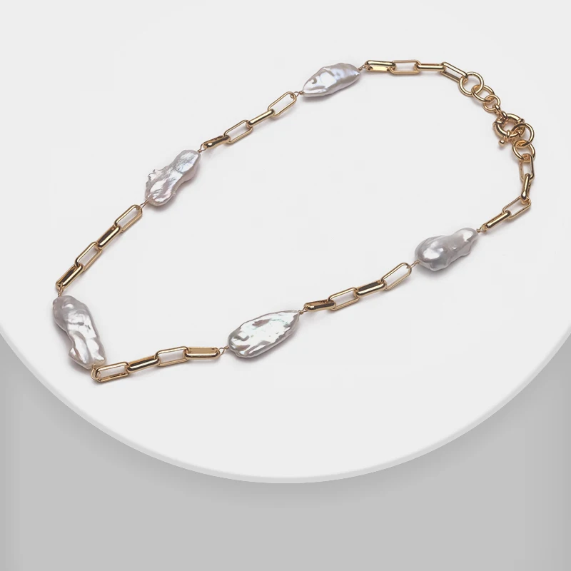 Бутик Amorita преувеличенный дизайн металлический стиль смешанный натуральный жемчужный элемент ожерелье
