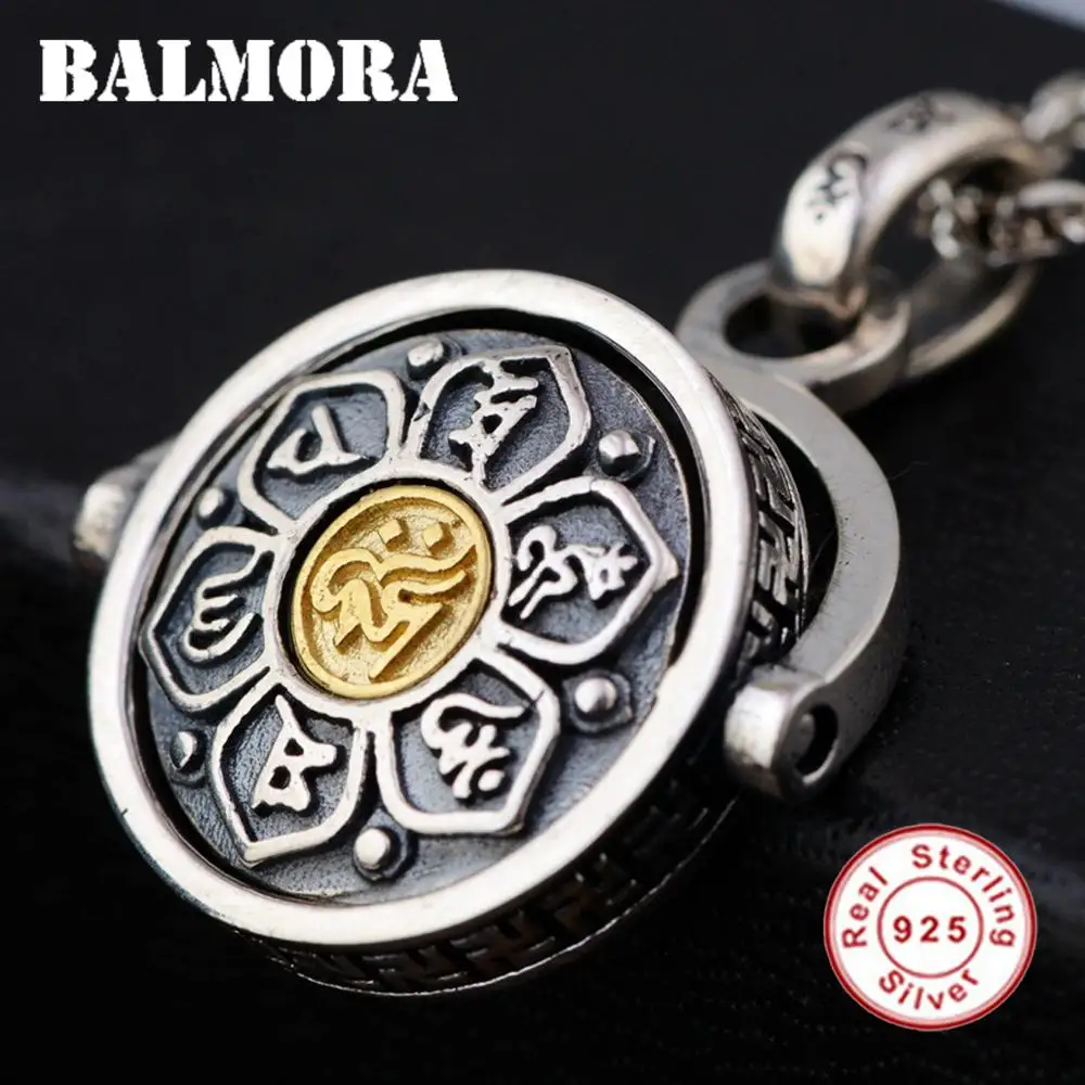 Балмора 925 пробы серебро 360 быстрое вращение буддийский шесть слов Подвески «Сутра» цепочки и ожерелья для мужчин религиозные украшения ...