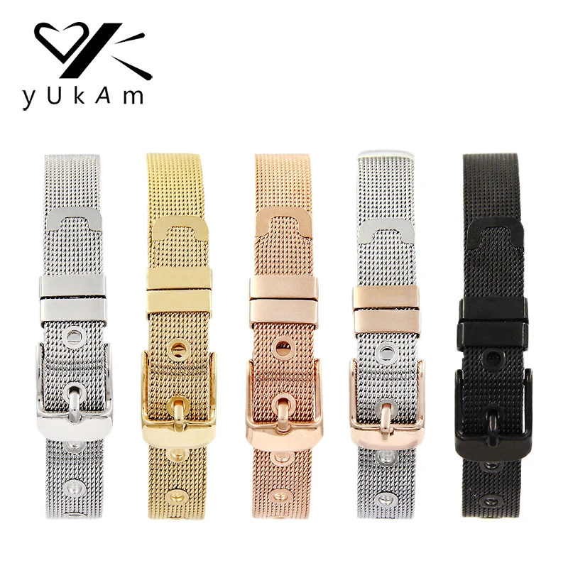 Ювелирные изделия yukam, женские, для девушек, нержавеющая сталь, сетка, хранитель браслетов, браслеты для коллекции, Pave Slide, подвески, серебро, розовое золото, черный